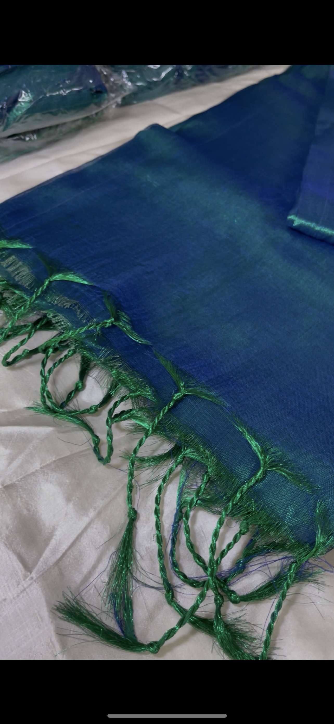Whether you’re attending a grand wedding, a family gathering, or a festive event, this saree ensures you shine with elegance and confidence. The combination of soft mul tissue and stunning peacock tones makes it a must-have addition to your ethnic collection.